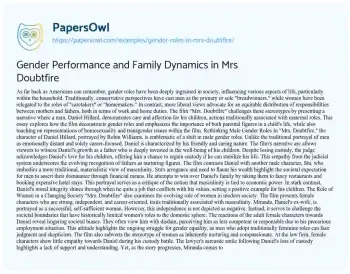 This essay explores how the film deconstructs gender roles and emphasizes the importance of both parental figures in a child's life, while also touching on representations of homosexuality and transgender issues within the film.