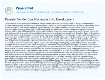 Parental Gender Conditioning in Child Development. (2020, Feb 18). Retrieved from https://hub.papersowl.com/examples/gender-stereotypes-and-bias-in-child-rearing/
