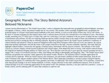 Geographic Marvels: The Story Behind Arizona's Beloved Nickname. (2024, Feb 20). Retrieved from https://hub.papersowl.com/examples/geographic-marvels-the-story-behind-arizonas-beloved-nickname/