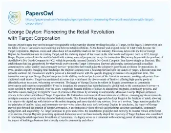George Dayton: Pioneering the Retail Revolution with Target Corporation. (2024, Mar 25). Retrieved from https://hub.papersowl.com/examples/george-dayton-pioneering-the-retail-revolution-with-target-corporation/