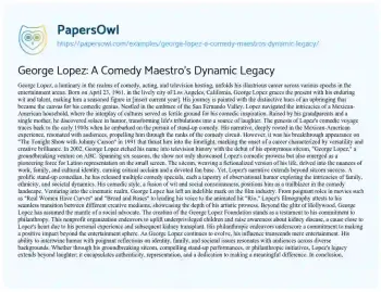 George Lopez: A Comedy Maestro's Dynamic Legacy. (2024, Feb 27). Retrieved from https://hub.papersowl.com/examples/george-lopez-a-comedy-maestros-dynamic-legacy/