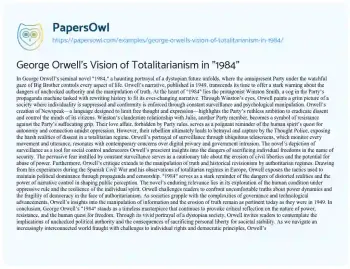 George Orwell's Vision of Totalitarianism in "1984". (2024, Jun 17). Retrieved from https://hub.papersowl.com/examples/george-orwells-vision-of-totalitarianism-in-1984/