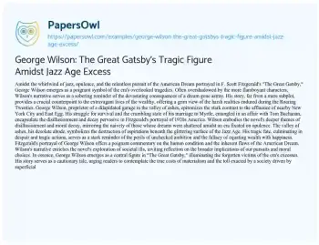 George Wilson: The Great Gatsby's Tragic Figure Amidst Jazz Age Excess. (2024, Mar 18). Retrieved from https://hub.papersowl.com/examples/george-wilson-the-great-gatsbys-tragic-figure-amidst-jazz-age-excess/