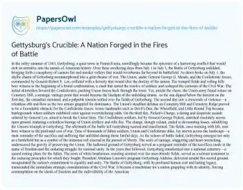 Gettysburg's Crucible: A Nation Forged in the Fires of Battle. (2024, Feb 20). Retrieved from https://hub.papersowl.com/examples/gettysburgs-crucible-a-nation-forged-in-the-fires-of-battle/