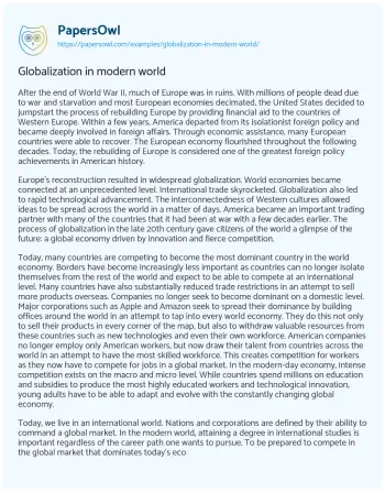 Globalization in modern world. (2019, Sep 20). Retrieved from https://hub.papersowl.com/examples/globalization-in-modern-world/