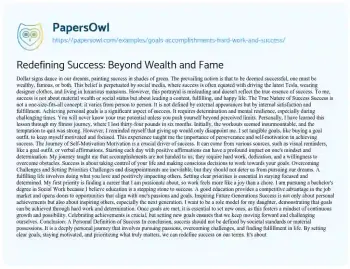 Redefining Success: Beyond Wealth and Fame. (2021, May 04). Retrieved from https://hub.papersowl.com/examples/goals-accomplishments-hard-work-and-success/