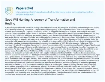 Good Will Hunting: A Journey of Transformation and Healing. (2023, Jun 20). Retrieved from https://hub.papersowl.com/examples/good-will-hunting-movie-review-overcoming-trauma-trust-and-personal-growth/