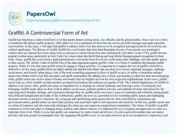 Graffiti: A Controversial Form of Art. (2025, Nov 08). Retrieved from https://hub.papersowl.com/examples/graffiti-a-controversial-form-of-art/