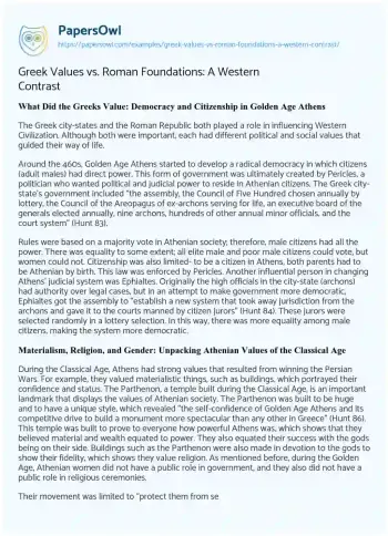 Greek Values vs. Roman Foundations: A Western Contrast. (2023, Aug 08). Retrieved from https://hub.papersowl.com/examples/greek-values-vs-roman-foundations-a-western-contrast/