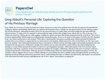 Greg Abbott's Personal Life: Exploring the Question of His Previous Marriage. (2024, Jun 01). Retrieved from https://hub.papersowl.com/examples/greg-abbotts-personal-life-exploring-the-question-of-his-previous-marriage/