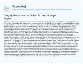 Gregory Lee Johnson: A Defiant Act and Its Legal Ripples. (2024, Jun 17). Retrieved from https://hub.papersowl.com/examples/gregory-lee-johnson-a-defiant-act-and-its-legal-ripples/