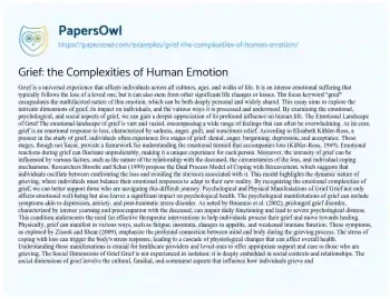 Grief: the Complexities of Human Emotion. (2025, Mar 29). Retrieved from https://hub.papersowl.com/examples/grief-the-complexities-of-human-emotion/