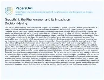 Groupthink: the Phenomenon and Its Impacts on Decision-Making. (2024, May 12). Retrieved from https://hub.papersowl.com/examples/groupthink-the-phenomenon-and-its-impacts-on-decision-making/