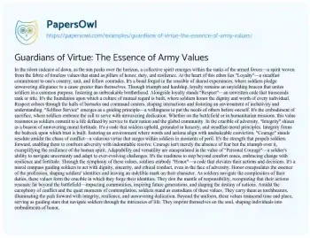 Guardians of Virtue: The Essence of Army Values. (2024, Jan 09). Retrieved from https://hub.papersowl.com/examples/guardians-of-virtue-the-essence-of-army-values/