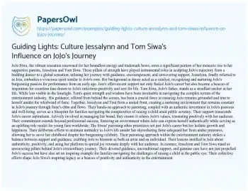 Guiding Lights: Culture Jessalynn and Tom Siwa's Influence on JoJo's Journey. (2023, Dec 22). Retrieved from https://hub.papersowl.com/examples/guiding-lights-culture-jessalynn-and-tom-siwas-influence-on-jojos-journey/