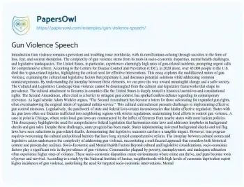 Gun Violence Speech. (2024, Dec 27). Retrieved from https://hub.papersowl.com/examples/gun-violence-speech/