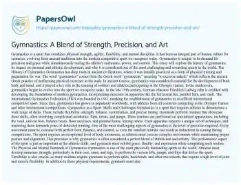 Gymnastics: A Blend of Strength, Precision, and Art. (2025, Jul 01). Retrieved from https://hub.papersowl.com/examples/gymnastics-a-blend-of-strength-precision-and-art/
