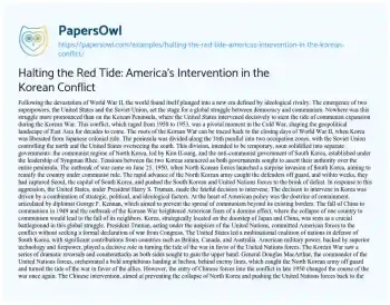 Halting the Red Tide: America's Intervention in the Korean Conflict. (2024, Jun 01). Retrieved from https://hub.papersowl.com/examples/halting-the-red-tide-americas-intervention-in-the-korean-conflict/