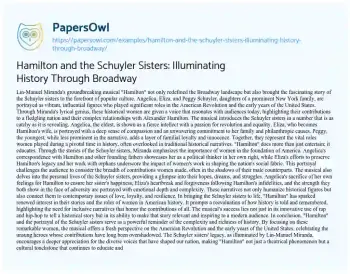 Hamilton and the Schuyler Sisters: Illuminating History Through Broadway. (2024, Feb 27). Retrieved from https://hub.papersowl.com/examples/hamilton-and-the-schuyler-sisters-illuminating-history-through-broadway/