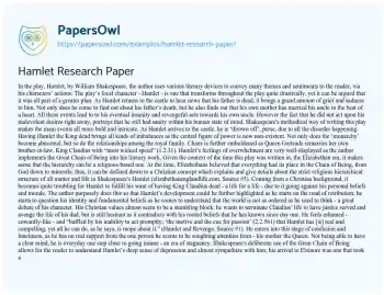Hamlet Research Paper