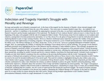 Indecision and Tragedy: Hamlet's Struggle with Morality and Revenge. (2023, Aug 20). Retrieved from https://hub.papersowl.com/examples/hamlets-indecision-the-central-catalyst-of-tragedy-in-shakespeares-masterpiece/
