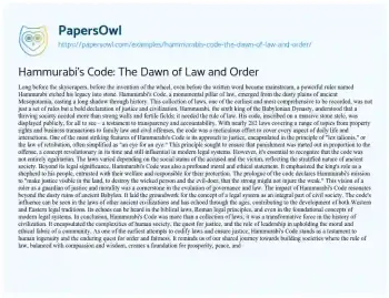 Hammurabi's Code: The Dawn of Law and Order. (2024, Jan 26). Retrieved from https://hub.papersowl.com/examples/hammurabis-code-the-dawn-of-law-and-order/