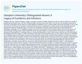 Hampton University's Distinguished Alumni: A Legacy of Excellence and Influence. (2024, Mar 25). Retrieved from https://hub.papersowl.com/examples/hampton-universitys-distinguished-alumni-a-legacy-of-excellence-and-influence/