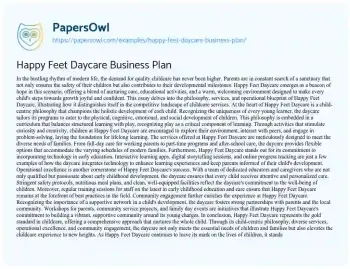 Happy Feet Daycare Business Plan. (2024, Apr 07). Retrieved from https://hub.papersowl.com/examples/happy-feet-daycare-business-plan/