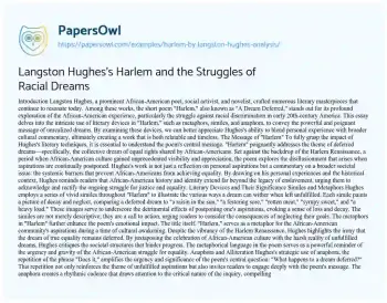 Langston Hughes’s Harlem and the Struggles of Racial Dreams. (2021, Apr 21). Retrieved from https://hub.papersowl.com/examples/harlem-by-langston-hughes-analysis/