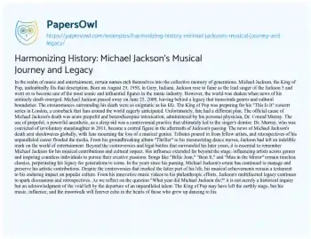 Harmonizing History: Michael Jackson's Musical Journey and Legacy. (2024, Jan 16). Retrieved from https://hub.papersowl.com/examples/harmonizing-history-michael-jacksons-musical-journey-and-legacy/