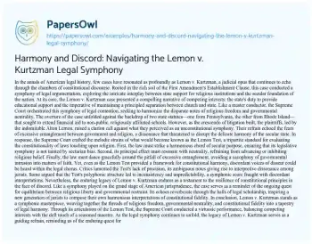 Harmony and Discord: Navigating the Lemon v. Kurtzman Legal Symphony. (2024, May 12). Retrieved from https://hub.papersowl.com/examples/harmony-and-discord-navigating-the-lemon-v-kurtzman-legal-symphony/
