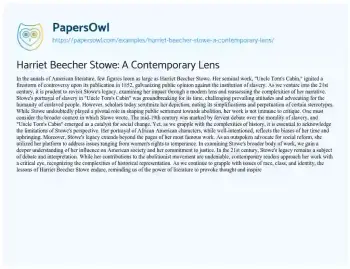 Harriet Beecher Stowe: A Contemporary Lens. (2024, Mar 12). Retrieved from https://hub.papersowl.com/examples/harriet-beecher-stowe-a-contemporary-lens/