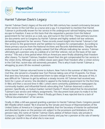 Harriet Tubman Davis’s Legacy. (2021, Mar 23). Retrieved from https://hub.papersowl.com/examples/harriet-tubman-daviss-legacy/