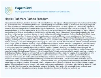 Harriet Tubman: Path to Freedom. (2020, Jul 23). Retrieved from https://hub.papersowl.com/examples/harriet-tubman-path-to-freedom/