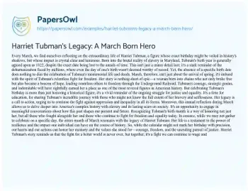 Harriet Tubman's Legacy: A March Born Hero. (2024, Feb 20). Retrieved from https://hub.papersowl.com/examples/harriet-tubmans-legacy-a-march-born-hero/