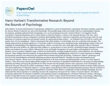 In conclusion, Harry Harlow’s pioneering experiments with rhesus monkeys have left an indelible mark on the fields of psychology and animal behavior, offering profound insights into the importance of maternal care and social relationships in primate development. By challenging prevailing theories, unraveling the neurobiological underpinnings of attachment, and sparking ethical debates, Harlow’s research continues to shape our understanding of human and animal behavior, leaving a lasting legacy that transcends disciplinary boundaries. His work serves as a testament to the power of scientific inquiry to transform our understanding of the world and inspire positive change, reflecting the enduring impact of his contributions on both the scientific community and society at large.