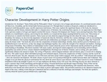 Character Development in Harry Potter Origins. (2020, Mar 01). Retrieved from https://hub.papersowl.com/examples/harry-potter-and-the-philosophers-stone-book-report/