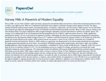 Harvey Milk: A Maverick of Modern Equality. (2024, Mar 01). Retrieved from https://hub.papersowl.com/examples/harvey-milk-a-maverick-of-modern-equality/