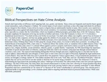 Biblical Perspectives on Hate Crime Analysis