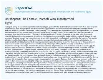 Hatshepsut: The Female Pharaoh Who Transformed Egypt. (2024, May 28). Retrieved from https://hub.papersowl.com/examples/hatshepsut-the-female-pharaoh-who-transformed-egypt/