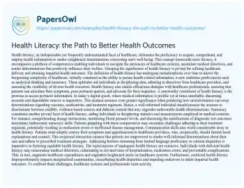 Health Literacy: the Path to Better Health Outcomes. (2024, May 12). Retrieved from https://hub.papersowl.com/examples/health-literacy-the-path-to-better-health-outcomes/