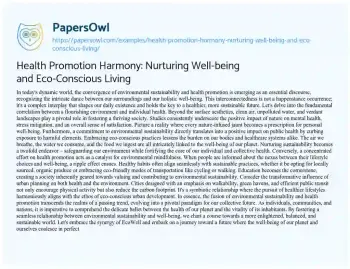 Health Promotion Harmony: Nurturing Well-being and Eco-Conscious Living. (2024, Mar 12). Retrieved from https://hub.papersowl.com/examples/health-promotion-harmony-nurturing-well-being-and-eco-conscious-living/