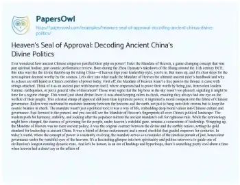 Heaven's Seal of Approval: Decoding Ancient China's Divine Politics. (2024, Apr 01). Retrieved from https://hub.papersowl.com/examples/heavens-seal-of-approval-decoding-ancient-chinas-divine-politics/