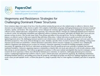 Hegemony and Resistance: Strategies for Challenging Dominant Power Structures. (2024, Mar 12). Retrieved from https://hub.papersowl.com/examples/hegemony-and-resistance-strategies-for-challenging-dominant-power-structures/