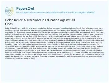 Helen Keller: A Trailblazer in Education Against All Odds. (2024, Feb 20). Retrieved from https://hub.papersowl.com/examples/helen-keller-a-trailblazer-in-education-against-all-odds/