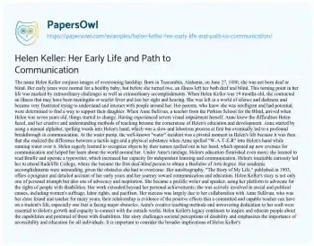 Helen Keller: Her Early Life and Path to Communication. (2024, Jul 21). Retrieved from https://hub.papersowl.com/examples/helen-keller-her-early-life-and-path-to-communication/