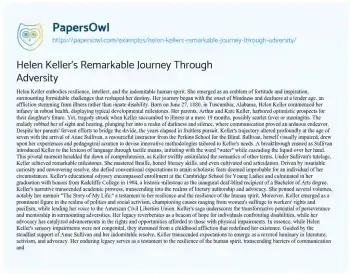 Helen Keller's Remarkable Journey Through Adversity. (2024, May 12). Retrieved from https://hub.papersowl.com/examples/helen-kellers-remarkable-journey-through-adversity/