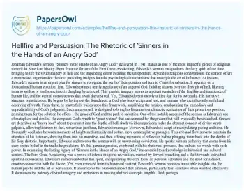 Hellfire and Persuasion: The Rhetoric of 'Sinners in the Hands of an Angry God'. (2023, Oct 16). Retrieved from https://hub.papersowl.com/examples/hellfire-and-persuasion-the-rhetoric-of-sinners-in-the-hands-of-an-angry-god/