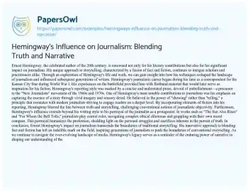 Hemingway's Influence on Journalism: Blending Truth and Narrative. (2024, Mar 12). Retrieved from https://hub.papersowl.com/examples/hemingways-influence-on-journalism-blending-truth-and-narrative/