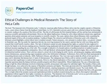 Ethical Challenges in Medical Research: The Story of HeLa Cells. (2021, Mar 18). Retrieved from https://hub.papersowl.com/examples/henrietta-lacks-a-donors-immortal-legacy/